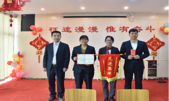 營銷部經(jīng)理伍綱強為邱高明、周美芳、黃榮先、龔超頒發(fā)先進個人獎